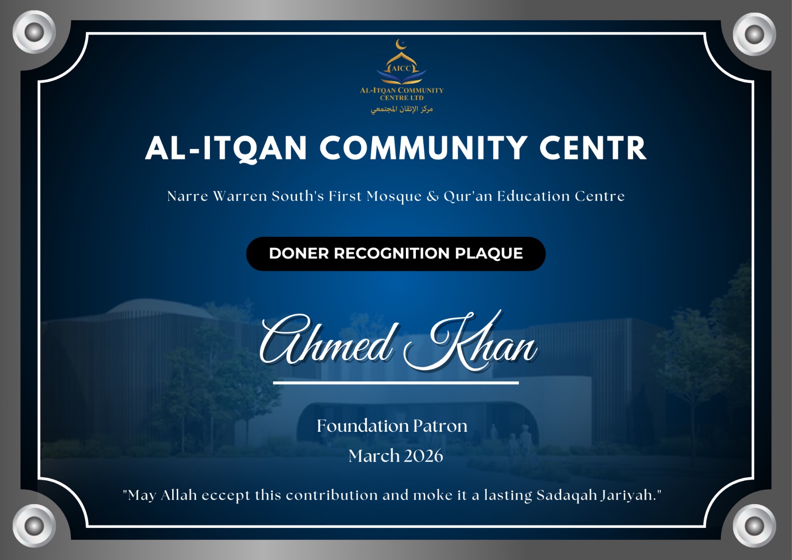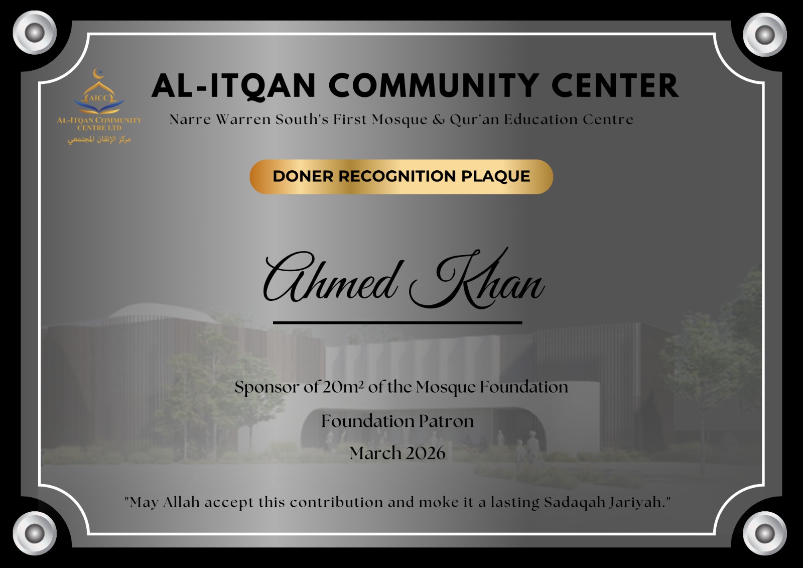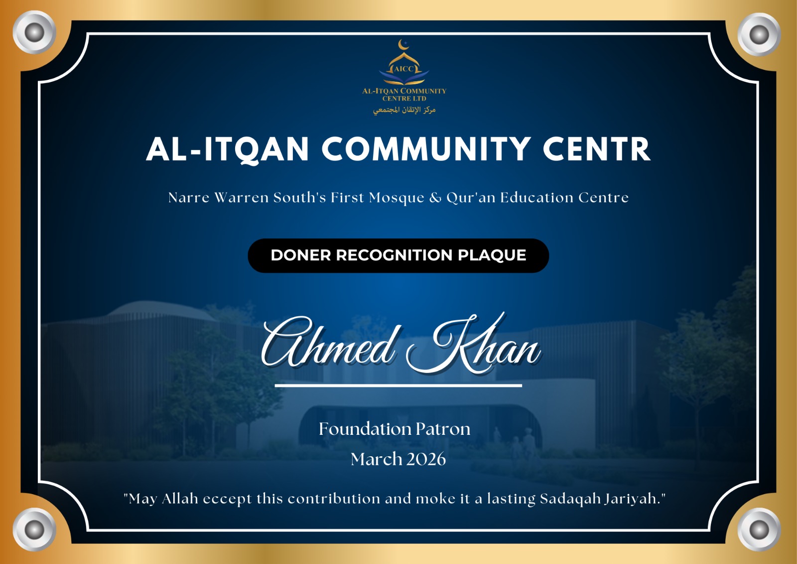 Build the first Mosque & Quran Education Centre of Narre Warren South