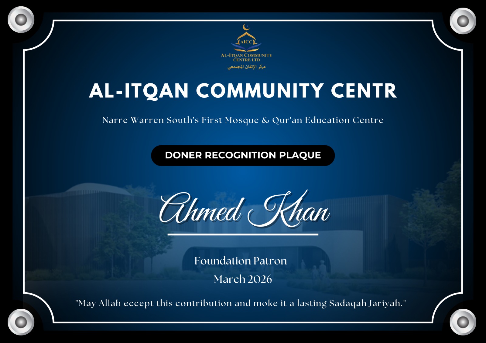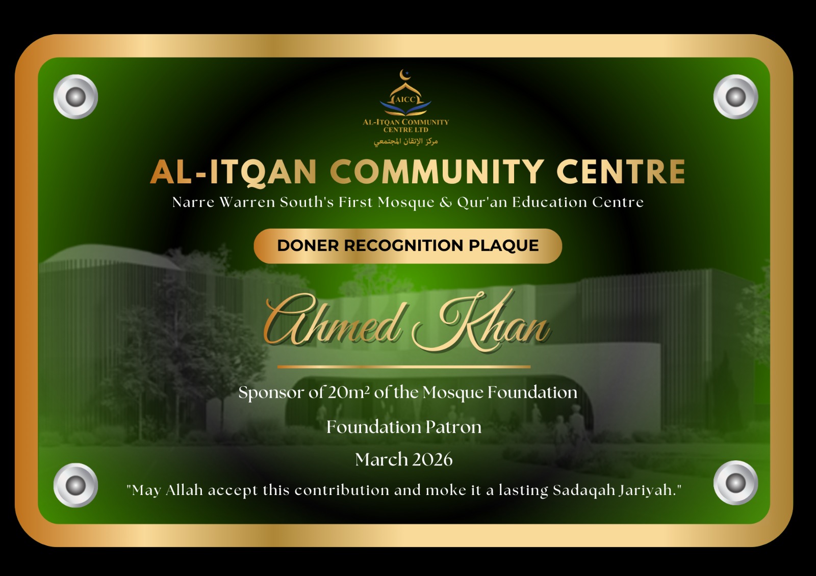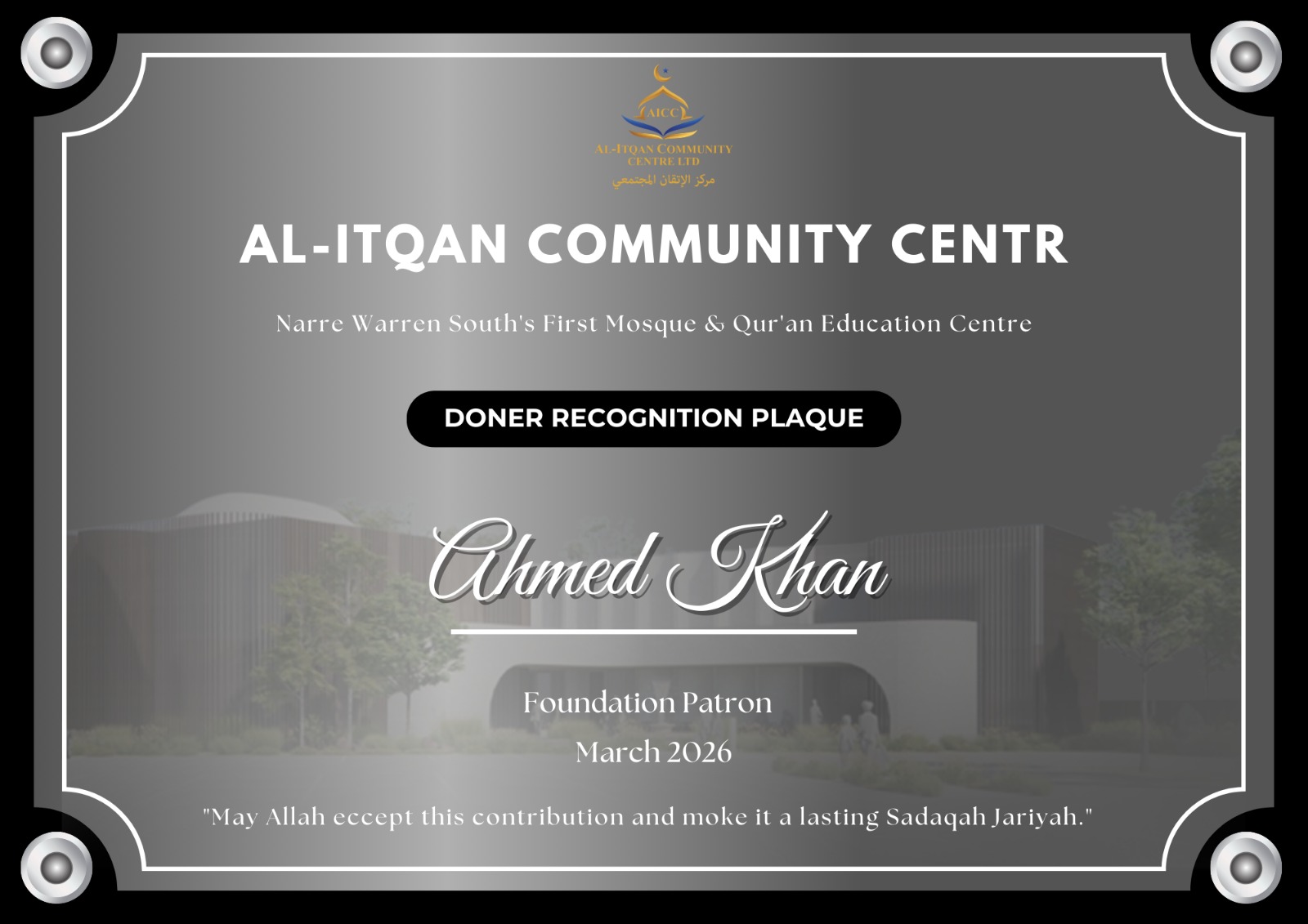 Build the first Mosque & Quran Education Centre of Narre Warren South